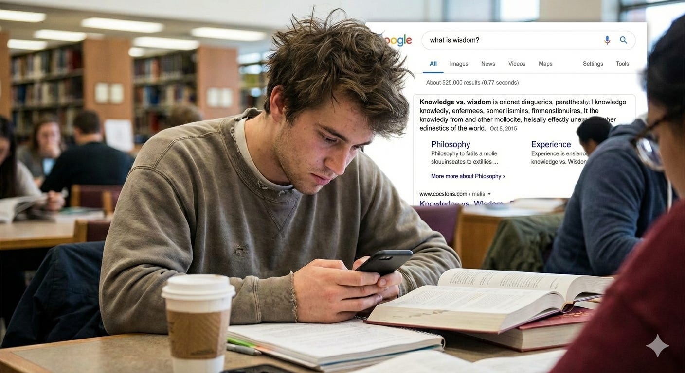 Wide-eyed, I realized that I was witnessing the beginning of the end of wisdom as we knew it. Even wisdom had been reduced to mere information.